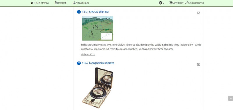 V neveřejné sekci (https://eduweb.vavyskov.cz) jsou nově k dispozici materiály, které bezpečnostní předpisy umožňují touto formou zveřejnit a materiály z e-learningových kurzů. Vše je rozděleno do tematických celků a podle hodnostních sborů, všichni vojáci aktivní zálohy ale mají přístup ke kompletním materiálům knihovny.