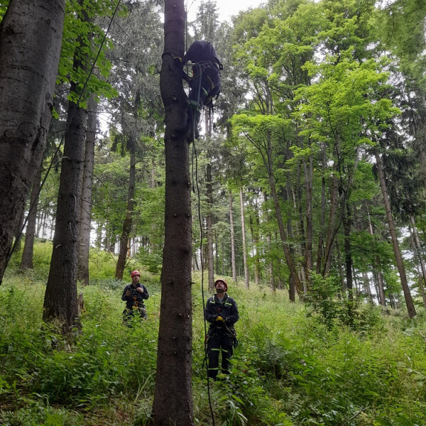 Když výsadkář uvízne na stromě. Vojenští hasiči na lezeckém výcviku