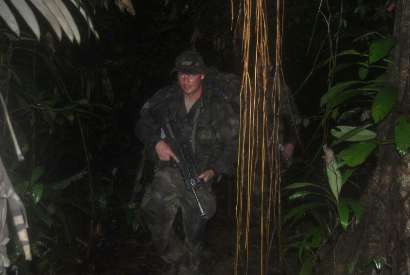 Po příletu do Francouzské Guyany, resp. na letiště v Cayenne, jsem musel dát za pravdu všem informacím o místním podnebí, neb vlhkost, která se pohybovala téměř okolo 80 %, byla opravdu znát a nejenom na mně se tahle změna počasí projevila. Cestou z letiště, kde nás vyzvedli již příslušníci cizinecké legie a odváželi místním autobusem na základnu v Kourou, jsme v průměru každý vypili asi 2 litry vody. První tři dny pobytu byly vyčleněné na naši aklimatizaci, v rámci kterých jsme se pomalu začali připravovat na výcvik. Osvojili jsme si používání útočné pušky Famas, kterou jsme během výcviku měli neustále u sebe, dovybavili jsme se potřebným materiálem, jenž je typický pro výcvik v džungli a absolvovali vstupní přezkoušení z plaveckých dovedností. Test probíhal v polní ústroji v místním bazénu, kde jsme kromě klasického plavání museli překonávat různé vodní překážky a podplavávat uměle vytvořené nástrahy, se kterými bychom se při výcviku mohli setkat v terénu. Celé přezkoušení bylo důležité především pro instruktory pověřenými vedením daného kurzu k jejich dokonalému přehledu o zdatných či méně zdatných plavcích.