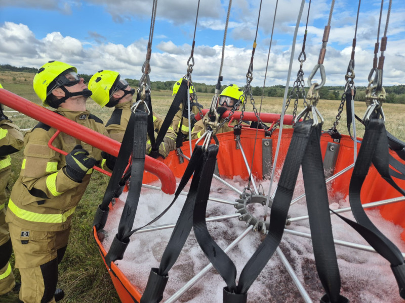 Na Březině cvičili hašení požárů z vrtulníku