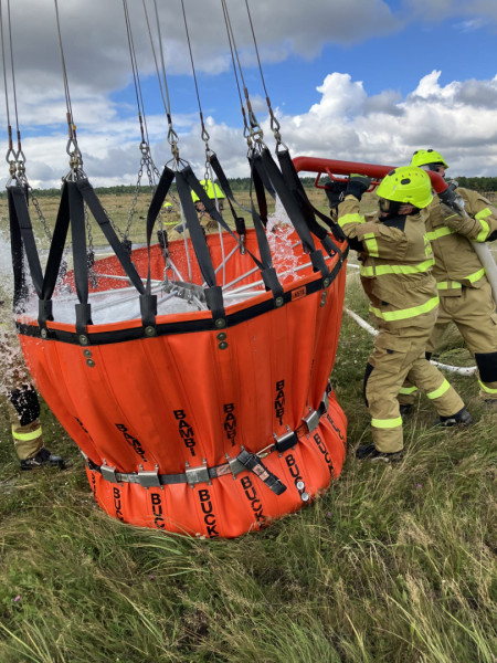 Během cvičení si jednotky vyzkoušely plnění vaku dvěma způsoby. Pomocí speciálních proudnic i nořením do speciální nádrže, tzv. FlexiTanku o objemu 54 m³, který pro účely výcviku zapůjčil Hasičský záchranný sbor Olomouckého kraje. FlexiTank se využívá zejména v místech s nedostatkem vodních zdrojů, což bývá častý problém při likvidaci požárů v odlehlém a těžko přístupném terénu.