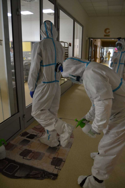 „Rozdělili jsme se na dva týmy, první má nastarosti úklid, práce v kuchyni, pravidelnou dezinfekci, převoz a manipulaci s materiálem. Druhý tým je určen pro přímou péči o pacienta pod dohledem odborného personálu,“ říká velitel nasazené jednotky nadporučík Jan Kornhäuser.
