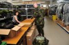 Další zastávkou novopečených vojáků je výstrojní sklad. Jejich „jezevci“ se postupně plní až k prasknutí vším potřebným, co budou v následujících měsících potřebovat. „Tohle je na zuby?“ ptá se jeden ze studentů a v ruce drží nejmenší ze čtyř vyfasovaných kartáčů. „Ano, a tady je k tomu pasta,“ přistupuje jedna z pracovnic výdejny na humornou konverzaci a ukazuje na plechovku s krémem na boty. Napůl ve vojenském opouští sklad mezi jinými i Vojtěch Blasko, absolvent ekonomky v Chocni. „Chtěl jsem zkusit něco jiného, něco zažít, zatím to byla samá čísla,“ vypočítává spolu s finančním zabezpečením důvody, které jej přivedly na Univerzitu obrany.