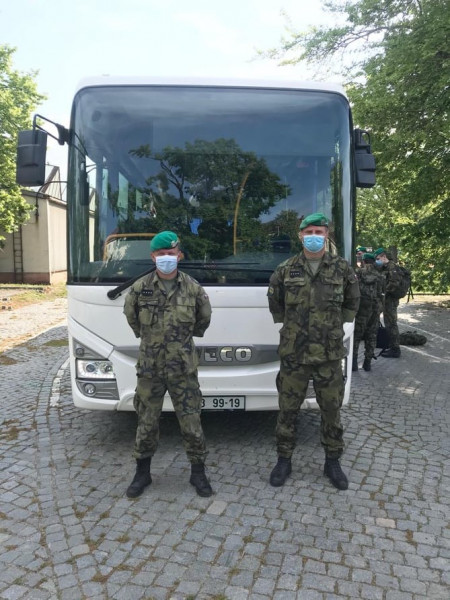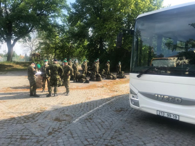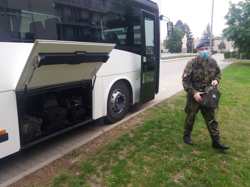 Fasování jídla a ochranných pomůcek na první dny nasazení, nakládání, včetně osobních věcí na 14 dní, nasedání. V neděli 10. května v ranních hodinách vyjížděl z kasáren Dědice autobus směr Mariánské Lázně. Zastávku měl však ještě v Brně, kde Vyškovští nabrali studenty Univerzity obrany, kteří jsou součástí nového týmu působícího od neděle v Léčebně dlouhodobě nemocných mariánskolázeňské městské nemocnice.