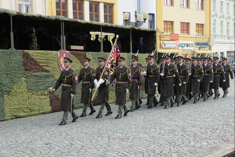 Poté se již příslušníci VeV-VA i s příslušníky právě probíhajících kurzů, přesunuli k hlavní části oslav, kterou byl slavnostní nástup na Masarykově náměstí ve Vyškově. Ten se uskutečnil za přítomnosti významných hostů, v čele s místopředsedou Senátu Parlamentu České republiky Ivo Bárkem, dále nového starosty města Vyškova Karla Jurky a nechyběli ani zástupci vojenských sdružení, klubů a spolků a samozřejmě veteráni. Součástí nástupu bylo připomenutí si Dne veteránů poselstvím ministra obrany Lubomíra Metnara a také v proslovech brigádního generála Radka Hasaly a dalších hostů. „Nároky na naši schopnost bránit suverenitu, svobodu a demokracii se nemenší, ba naopak. Jsme součástí Severoatlantické aliance a z toho vyplývají povinnosti, jimiž jsou všichni spojenci vázáni při plnění úkolů v zahraničních operacích,“ zmínil mimo jiné brigádní generál Hasala, přičemž vyzdvihl významný podíl VeV-VA v rámci výcviku nejen českých, ale i zahraničních příslušníků a celých jednotek pro jejich nasazení do zahraničních operací a aliančních struktur, jako jedné z priorit v rámci široké působnosti VeV-VA.