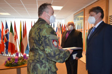 Ti si jej bohužel z důvodu přetrvávající pandemie nemohli převzít osobně z rukou ministra. V adventní slavnostní atmosféře tak poděkování převzali z rukou velitele VeV-VA brigádního generála Radka Hasaly tito občanští zaměstnanci: Ing. Jiří Nudčenko z Centra přípravy do zahraničních operací, podílející se dlouhodobě na mezirezorní a mezinárodní přípravě a Ing. Ladislav Jůn, bezpečnostní referent z Oddělení logistiky. Pro Ladislava Jůna je to zároveň ocenění jeho práce před odchodem do důchodu v závěru tohoto roku.