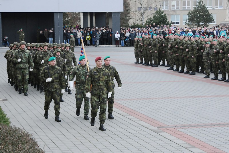 A muster of male and female soldiers taking their oaths, a flyover of combat helicopters, parading the battle standard of the Training Command - Military Academy accompanied by the Platoon of Honour, lined-up troops inspected by the Commander of the Training Command – Military Academy Colonel Josef Kopecký, also clarification of the significance of the military oath ceremony, the very act of taking the oath itself, troops on parade marching ... All of that was happening in front of several hundred guests, including family members.