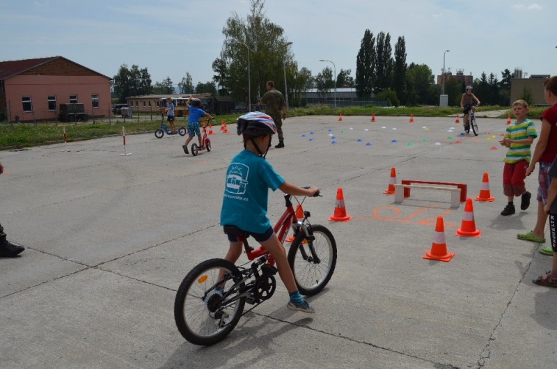 Centrum dopravní výchovy pak pro ně připravilo také naučnou část, kdy děti předváděly své dovednosti na koloběžce a kole na připravené trati dětského cyklistického hřiště a také znalosti v dopravní výchově. A za svou šikovnost si odnesly od vojáků i bonbóny.