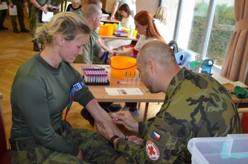 Zdravotnímu personálu z ČNRDD při odběrech krve již pravidelně pomáhají i profesionálové z Úseku přípravy zdravotnických odborností Odboru profesní přípravy VeV-VA.